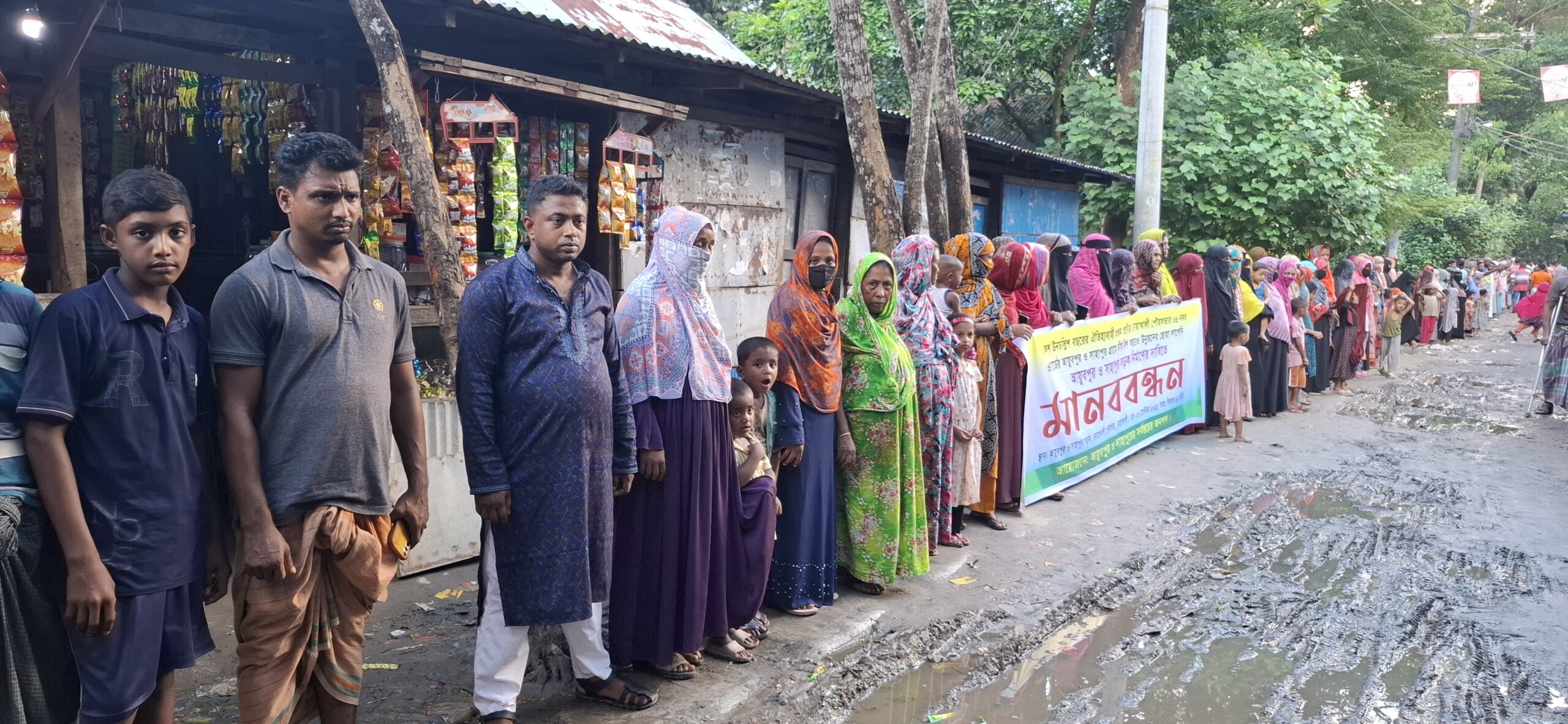 মানববন্ধন ও বিক্ষোভ কর্মসূচিতে শত শত নারী-পুরুষ, ব্যবসায়ী ও শিক্ষার্থীরা অংশ নেন। তারা বলেন, অবিলম্বে তিনটি রাস্তা নির্মাণ করা না হলে বৃহত্তর আন্দোলনের ঘোষণা দেওয়া হবে।