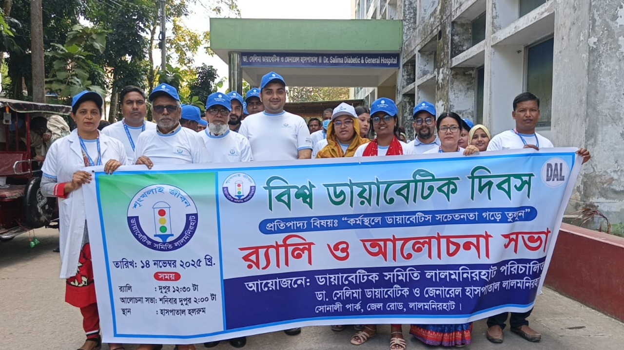 ‘কর্মস্থলে ডায়াবেটিক সচেতনতা গড়ে তুলুন’—এই প্রতিপাদ্যকে সামনে রেখে লালমনিরহাটে বিশ্ব ডায়াবেটিক দিবস যথাযথ মর্যাদায় পালিত হয়েছে। দিবসটি উপলক্ষে ডায়াবেটিক সমিতি লালমনিরহাটের আয়োজনে বর্ণাঢ্য র্যালি ও আলোচনা সভা অনুষ্ঠিত হয়।