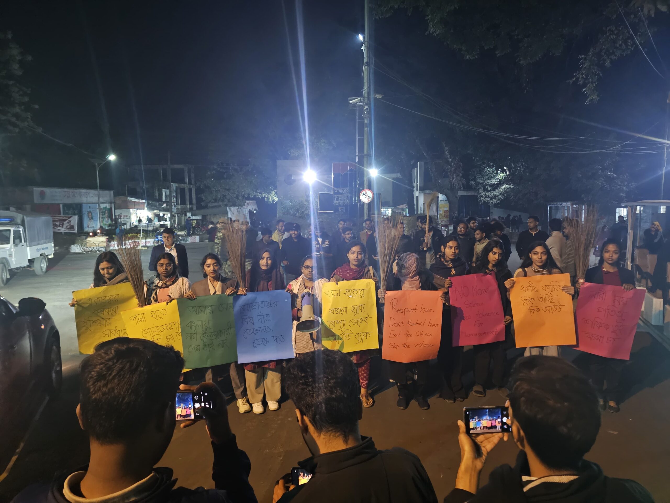 পহেলা ফেব্রুয়ারি রোববার রাত আনুমানিক ৯টায় শিক্ষার্থীরা বিশ্ববিদ্যালয়ের জিরো পয়েন্টে সমবেত হয়ে বিক্ষোভ শুরু করেন। পরে তারা নারীবিদ্বেষ বিরোধী বিভিন্ন স্লোগান দিতে দিতে কাটা পাহাড় সড়ক প্রদক্ষিণ করে শহীদ মিনারে গিয়ে সমাবেশ শেষ করেন। সেখানে তারা বিতর্কিত পোস্টটির তীব্র নিন্দা জানান এবং সংশ্লিষ্ট ব্যক্তির শাস্তির দাবি তোলেন।