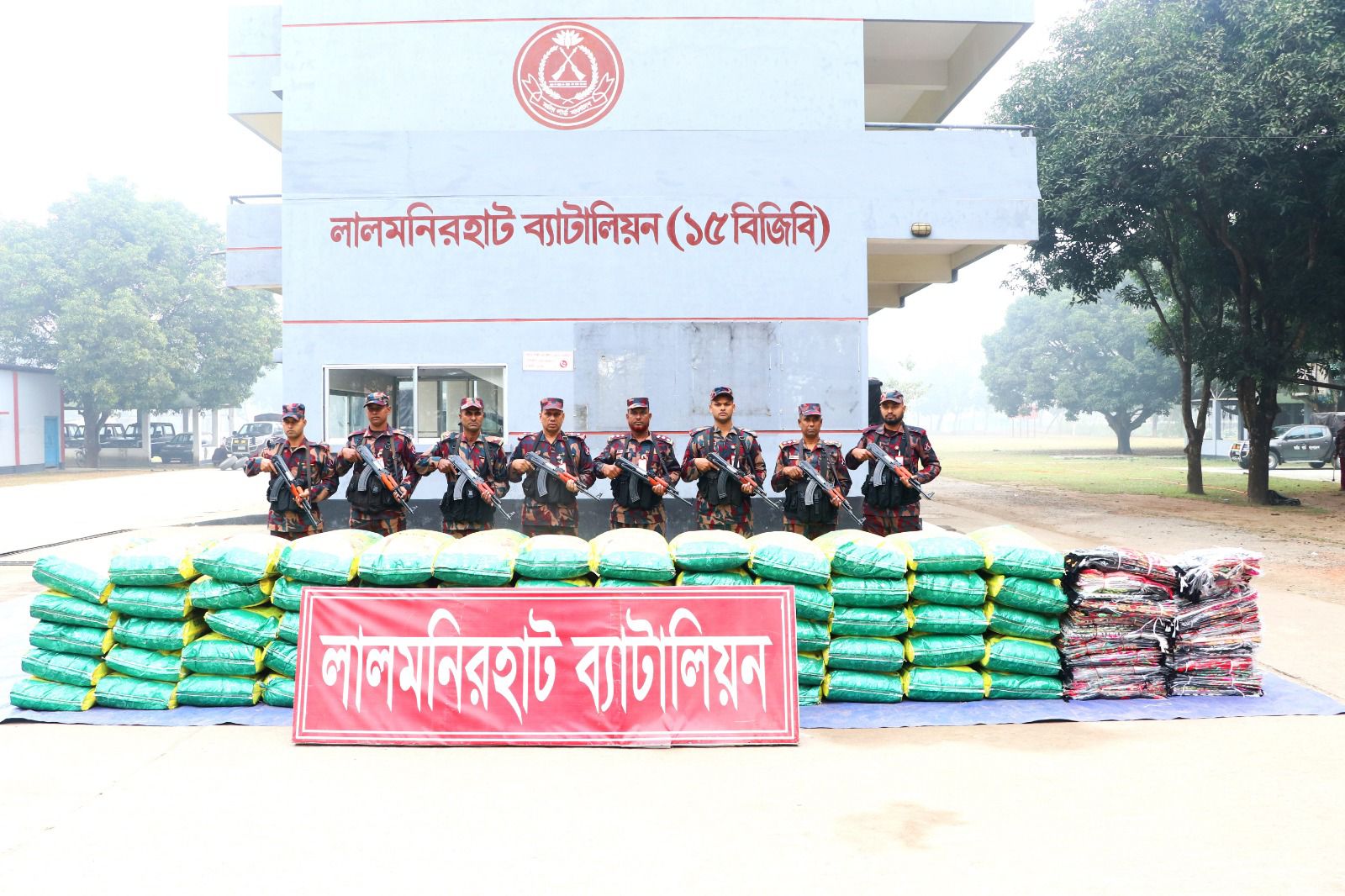 বিজিবির বড় সাফল্য: লালমনিরহাটে বিপুল পরিমাণ জিরা ও কাপড়সহ ৩০ লাখ টাকার মাদক ও মালামাল জব্দ
