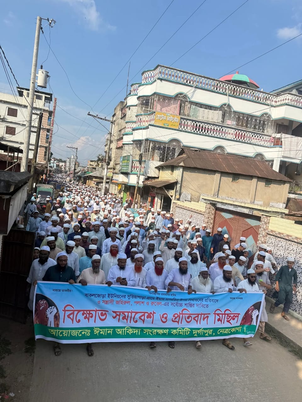 নেত্রকোণার দুর্গাপুর উপজেলার সুতিয়াপাড়া গ্রামে ইমাম দম্পতির উপর নির্যাতনের ঘটনায় জড়িতদের সর্বোচ্চ বিচারের দাবিতে বিক্ষোভ সমাবেশ ও প্রতিবাদ কর্মসূচি অনুষ্ঠিত হয়েছে।