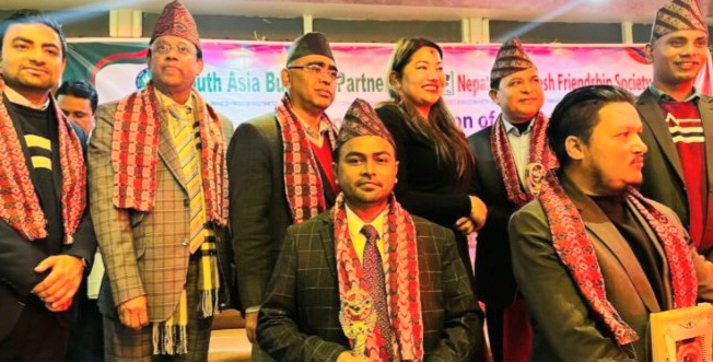 শুক্রবার (১০ ফেব্রুয়ারি) নেপালের কাটমান্ডু’র হোটেল মার্শাংদি অডিটোরিয়ামে এক জমকালো অনুষ্ঠানে ব্যবসা ও সমাজসেবায় বিশেষ অবদান রাখায় দক্ষিণ এশিয়া ব্যবসায়িক অংশীদারিত্বের সূচনাকল্পে ‘সাউথ এশিয়া বিজনেস পার্টনারশিপ’ সনদপত্র ও অ্যাওয়ার্ড প্রদান করেন নেপালের স্বরাষ্ট্রমন্ত্রী।