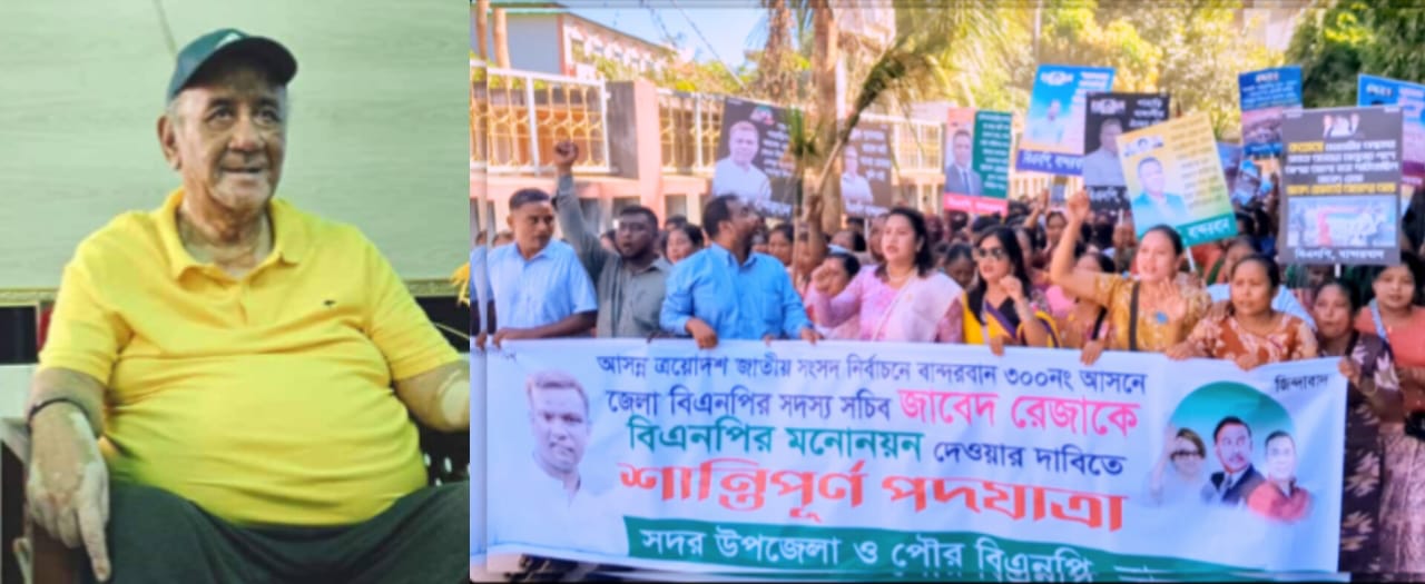 বান্দরবান ৩০০ নং আসনে ২০০১ সালের ধানের শীষের বিরুদ্ধে বিদ্রোহী প্রার্থী,বারে বারে পরাজিত সাচিং প্রু জেরীর মনোনয়ন প্রত্যাহার করে, জাবেদ রেজা’কে মনোনয়ন দেওয়ার দাবিতে বিএনপির একাংশের নেতাকর্মীরা পদযাত্রা ও মানববন্ধন করেছে।