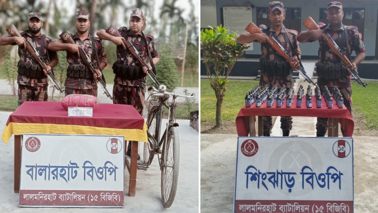 লালমনিরহাট ব্যাটালিয়ন (১৫ বিজিবি) তাদের দায়িত্বপূর্ণ কুড়িগ্রাম সীমান্তে বিশেষ অভিযান চালিয়ে ভারতীয় মাদকদ্রব্য ও চোরাচালানের কাজে ব্যবহৃত বাইসাইকেল জব্দ করেছে। শুক্রবার (০৭ নভেম্বর, ২০২৫) সন্ধ্যায় ও রাতে দুটি পৃথক অভিযানে ফেন্সিডিল এবং গাঁজা উদ্ধার করা হয়, যার সর্বমোট বাজারমূল্য দাঁড়িয়েছে ৫৫,২০০ টাকা।