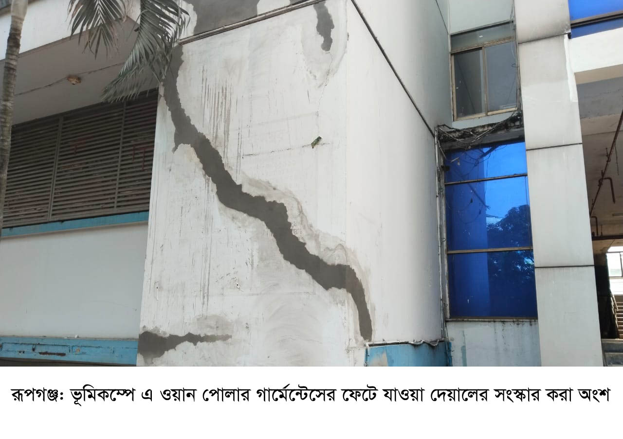 ভূমিকম্পে রূপগঞ্জের এওয়ান পোলার, আবুল খায়ের গ্রুপের রবিনটেক্স কারখানা ও ম্যাক্স স্যুয়েটারসহ বেশকয়েকটি শিল্প কারখানার ভবনে ফাটল দেখা দিয়েছে। মাটি দিয়ে তৈরি করা ঘরের দেয়ালেও ফাটল দেখা গেছে।