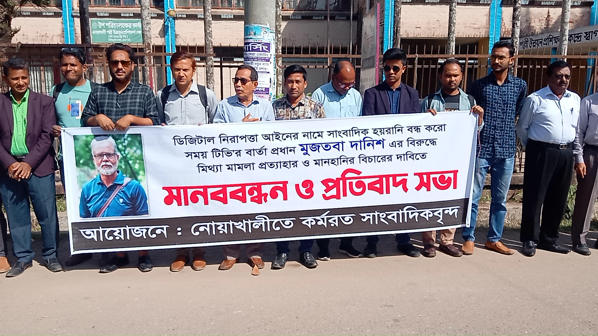 সময় টেলিভিশনের বার্তা প্রধান মুজতবা দানিশ ও রংপুর বিভাগীয় ব্যুরো প্রধান রতন সরকার এর বিরুদ্ধে মিথ্যা মামলা প্রত্যাহারের দাবিতে এবং পুলিশি হয়রানির প্রতিবাদে নোয়াখালীতে মানববন্ধন ও বিক্ষোভ মিছিল অনুষ্ঠিত হয়েছে।
