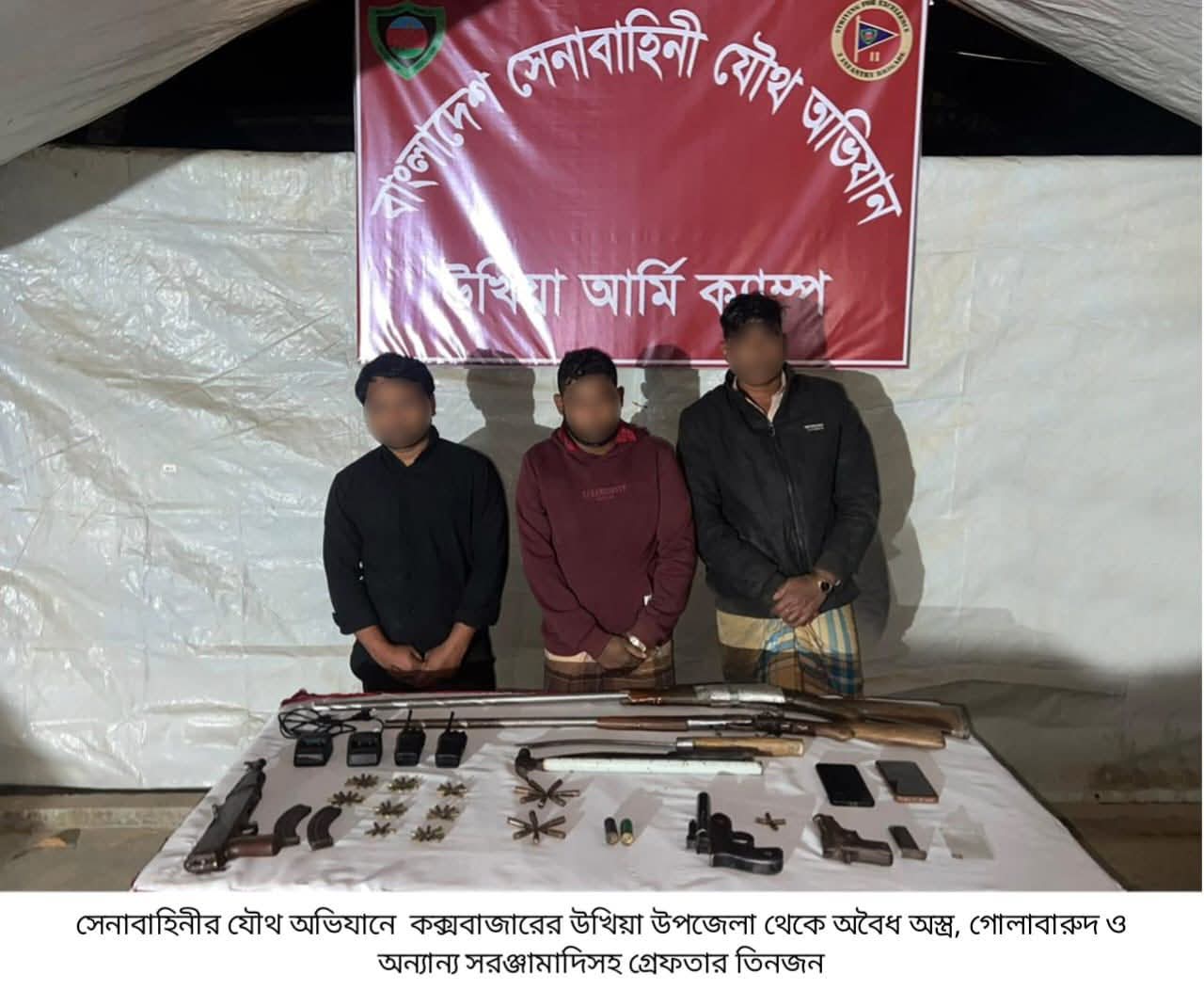 উখিয়ার বালুখালীতে সেনাবাহিনীর বিশেষ যৌথ অভিযান: অস্ত্র-গোলাবারুদসহ শীর্ষ সন্ত্রাসী চক্রের সদস্য আটক