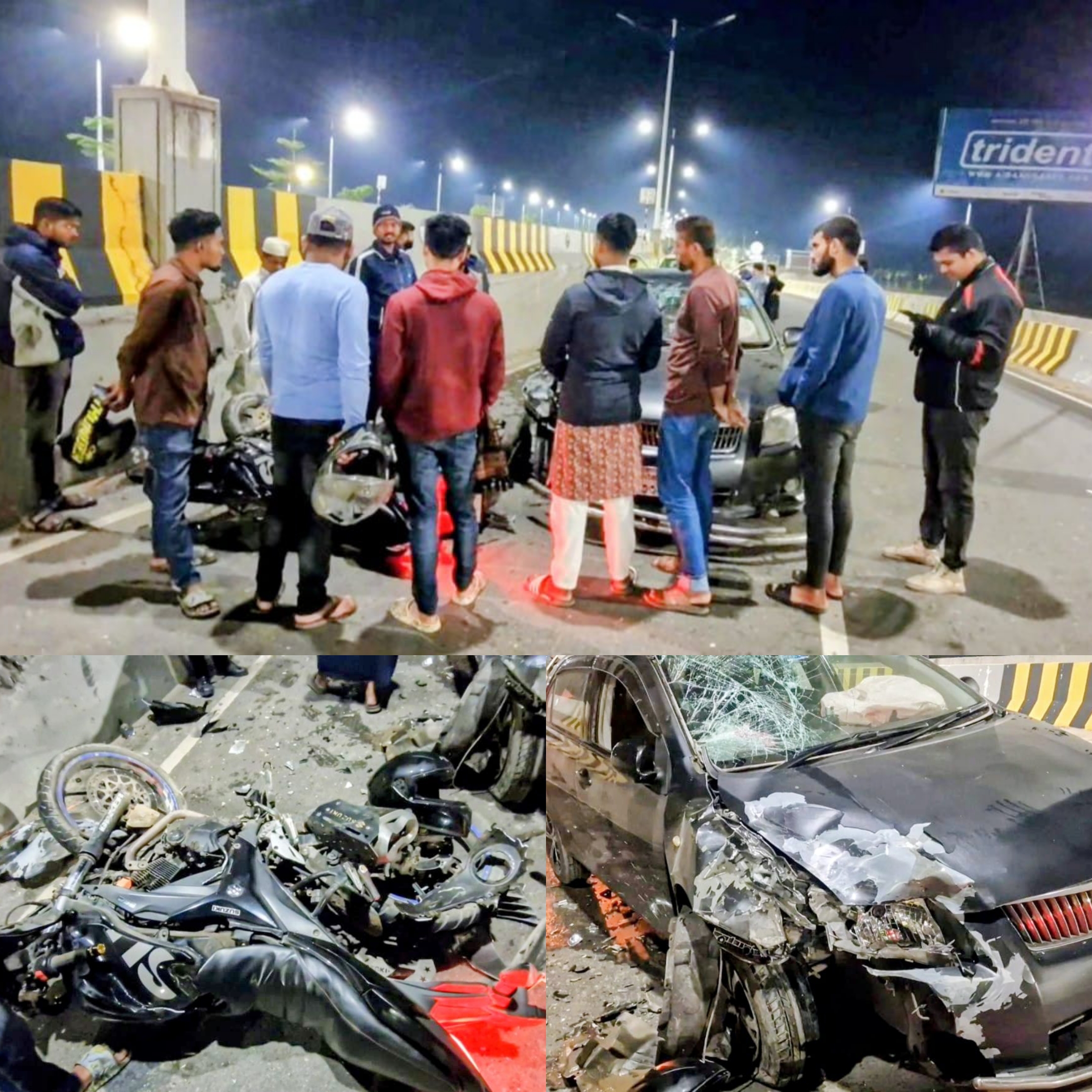 কাঞ্চন হাইওয়ে পুলিশ ক্যম্পের পরিদর্শক সোহেল রানা বলেন, রাত ১০ টার দিকে কুড়িলবিশ্বরোড থেকে ভুলতাগামী একটি প্রাইভেটকারে সাথে বিপরীতদিক থেকে উল্টােপথে আসা দ্রুতগামী একটি মোটসাকেলের মুখোমুখি সংঘর্ষের ঘটনা ঘটে। সংঘর্ষে মোটরসাইকেলটি দুমড়ে মুচড়ে যায়। এসময় গুরুতর আহত হয় মোটরসাইকেল আরোহী গোলাম রাব্বি ও রায়হান সরকার। আশে পাশের লোকজন তাদের উদ্ধার করে স্থানীয় একটি বেসরকারী হাসপাতালে নিয়ে যায়। সেখানে অবস্থার অবনতি হওয়ায় তাদেরকে ঢাকা মেডিকেল হাসপাতালে ভর্তি করা হয়।