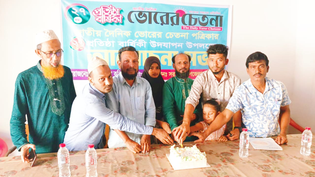 ব্রাহ্মণবাড়িয়ার সরাইলে আনন্দঘন পরিবেশে জাতীয় দৈনিক ভোরের চেতনা পত্রিকার ২৭ তম প্রতিষ্ঠা বার্ষিকী পালন করা হয়েছে। শনিবার (১৫ নভেম্বর) বেলা ১২টার দিকে উপজেলা প্রেসক্লাবে মিলনায়তনে এ প্রতিষ্ঠা বার্ষিকীর আয়োজন করা হয়।