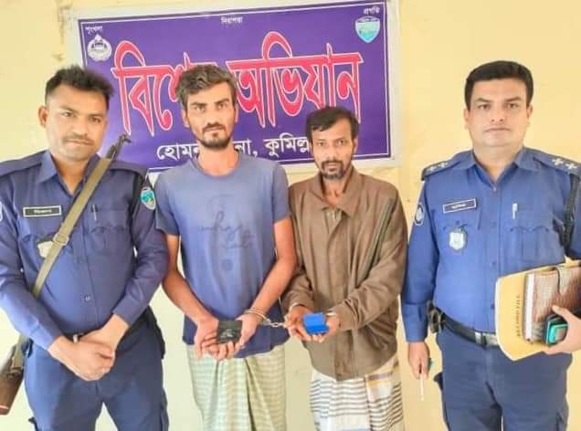 কুমিল্লার হোমনায় পুলিশের অভিযানে এক’শ দুই পিস ইয়াবাসহ মো.শাহজালাল ও শরিকুল ইসলাম নামে দুই চিহ্নিত মাদক কারবারিকে গ্রেপ্তার করেছে পুলিশ। গত বৃহস্পতিবার রাত ১১ টার দিকে উপজেলার ভাষানিয়া ইউনিয়নের শ্যামপুর গ্রামের সাম মিয়ার বাড়ির পার্শ্বের সড়ক থেকে ইয়াবা বিক্রির সময় হাতে নাতে তাদের আটক করে পুলিশ ।পরে তাদের দেহ তল্লাশি করে এক’শ দুই পিস ইয়ারা ট্যাবলেট উদ্ধার করা হয়।গ্রেপ্তারকৃত মাদক কারবারি মো.শাহজালাল (৩০) ভাষানিয়া ইউনিয়নের ওমরাবাদ গ্রামের আবদুর রহমান ও শফিকুল ইসলাম ৫৮)একই গ্রামের মৃত আবদুল কাদির মিয়ার ছেলে।হোমনা থানা সূত্রে জানা যায়, গত বৃহস্পতিবার গোপন সংবাদের ভিত্তিতে রাত ১১ টার দিকে থানার অফিসার ইনচার্জ ওসি সাইফুল ইসলামের নির্দেশে থানার এসআই মো. হানিফ সঙ্গীয় ফোর্স নিয়ে ভাষানিয়া ইউনিয়নের শ্যামপুর গ্রামে অভিযান চালিয়ে এক’শ দুই পিস ইয়াবা ট্যাবলেটসহ দুই জনকে গ্রেপ্তার করতে সক্ষম হয়।এ বিষয়ে হোমনা থানার অফিসার ইনচার্জ (ওসি) মো. সাইফুল ইসলাম বলেন, আটককৃত আসামিদের বিরুদ্ধে মাদকদ্রব্য নিয়ন্ত্রণ আইনে মামলা দায়ের করে তাদের আদালতের মাধ্যমে জেল হাজতে প্রেরণ করা হয়েছে। তিনি আরও বলেন, মাদকের বিরুদ্ধে আমরা সোচ্চার আছি মাদকের বিরুদ্ধে জিরো টলারেন্স পুলিশের এ অভিযান অব্যাহত রয়েছে।