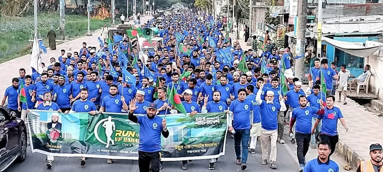 সংসদ সদস্য প্রার্থী শহিদুল আলম বাহাদুর (ভিপি বাহাদুর) নেতৃত্বে গণ-দৌড় শহরের প্রধান সড়ক প্রদক্ষিণ করে হলিডে মোড় হয়ে লাবণী পয়েন্ট সমুদ্র সৈকতে গিয়ে শেষ হয়। পুরো কর্মসূচিতে কয়েক হাজার তরুণ-যুবক, সংগঠক, জনপ্রতিনিধি, শিক্ষক, সাংবাদিক, সমাজপতি ও স্বেচ্ছাসেবকের অংশগ্রহণ ছিল চোখে পড়ার মতো।