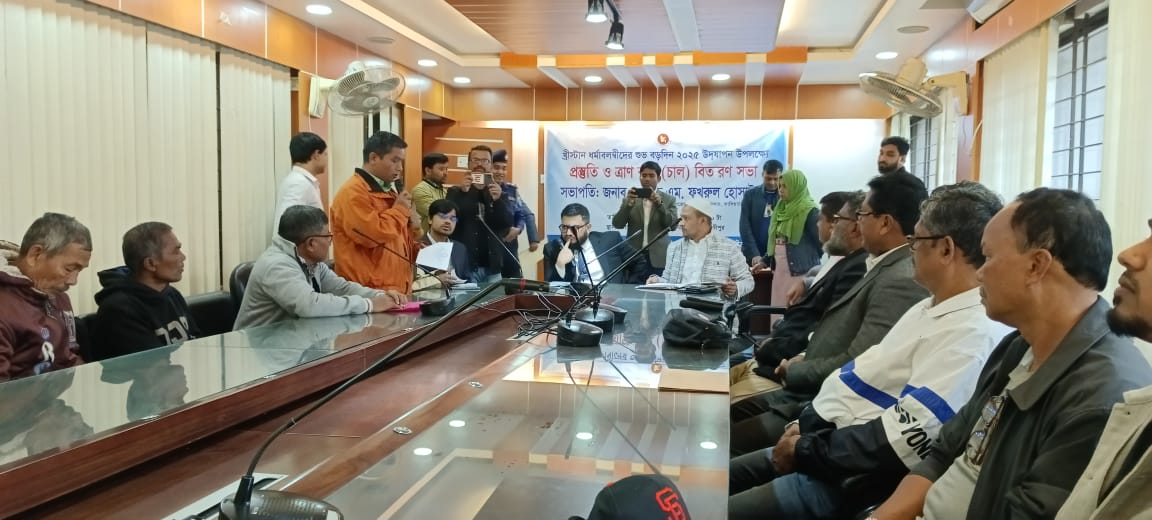 গাজীপুরের কালিয়াকৈরে ব্রীষ্টান ধর্মালম্বীদের শুভ বড়দিন-২০২৫ উৎসব উপলক্ষ্যে উপজেলা প্রশাসন দূর্যোগ ব্যবস্থাপনা অধিদপ্তর আয়োজিত প্রস্তুতি ও ত্রাণ কার্য (চাল) বিতরণ সভা অনুষ্ঠিত হয়েছে।