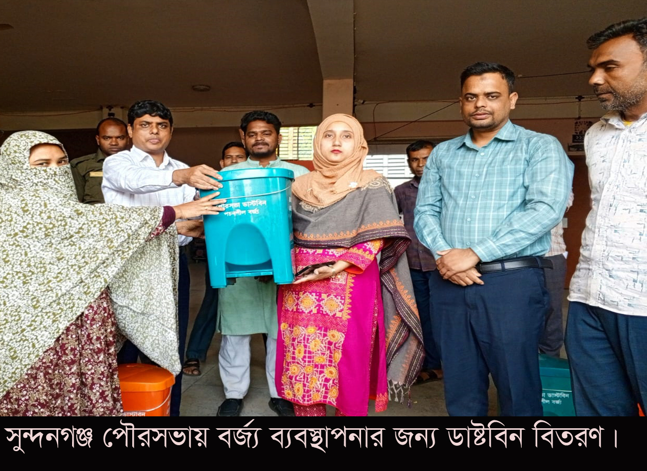 বর্জ্য ব্যবস্থাপনার জন্য সুন্দরগঞ্জ  পৌর এলাকায় ডাষ্টবিন বিতরণ
