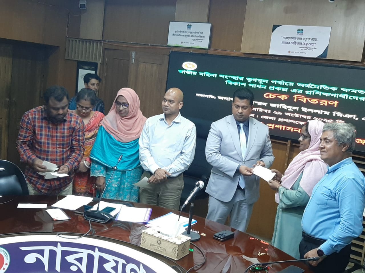 জেলা প্রশাসকের সম্মেলন কক্ষে জেলা প্রশাসক জনাব মোঃ জাহিদুল ইসলাম মিয়া–এর সভাপতিত্বে “জাতীয় মহিলা সংস্থার তৃণমূল পর্যায়ে অর্থনৈতিক ক্ষমতায়নে নারী উদ্যোক্তাদের বিকাশ সাধন প্রকল্প”-এর প্রশিক্ষণার্থীদের মাঝে চেক বিতরণ অনুষ্ঠান অনুষ্ঠিত হয়।২৯ অক্টোবর বুধবার বিকাল ৩টা ৪০ মিনিটে এই কার্যক্রম অনুষ্ঠিত হয়।