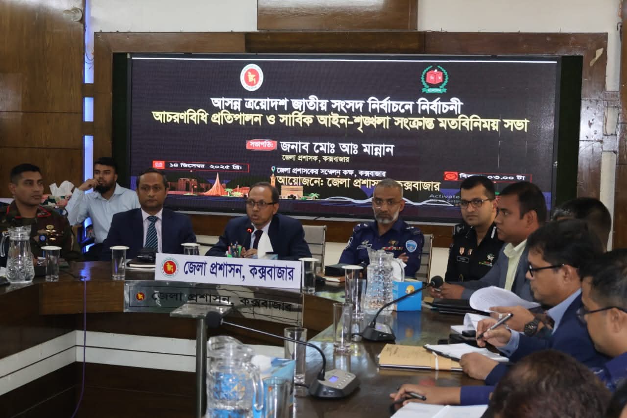 অদ্য ১৪ ডিসেম্বর ২০২৫ খ্রিঃ দুপুর ৩টায় কক্সবাজার জেলা প্রশাসকের কার্যালয়ের সম্মেলন কক্ষে এ সভা অনুষ্ঠিত হয়। সভায় সভাপতিত্ব করেন জনাব মোঃ আঃ মান্নান, জেলা প্রশাসক, কক্সবাজার। এতে প্রধান অতিথি হিসেবে উপস্থিত ছিলেন জনাব এ.এন.এম. সাজেদুর রহমান, পুলিশ সুপার, কক্সবাজার জেলা।