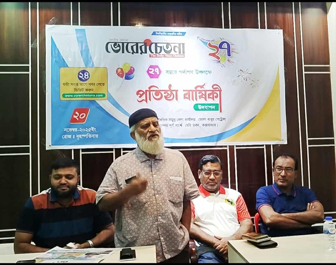 বহুল প্রচারিত ও পাঠকপ্রিয় জাতীয় দৈনিক ভোরের চেতনা পত্রিকার ২৭তম প্রতিষ্ঠাবার্ষিকী কক্সবাজারে বর্ণাঢ্য আয়োজনে উদযাপন করা হয়েছে। মঙ্গলবার (২০ নভেম্বর) সন্ধ্যায় শহরের ভোলা বাবুর পেট্রোল পাম্পের পূর্ব পাশে অবস্থিত দৈনিক সমুদ্রবেলা কার্যালয়ে কেক কাটা ও আলোচনা সভার আয়োজন করা হয়।