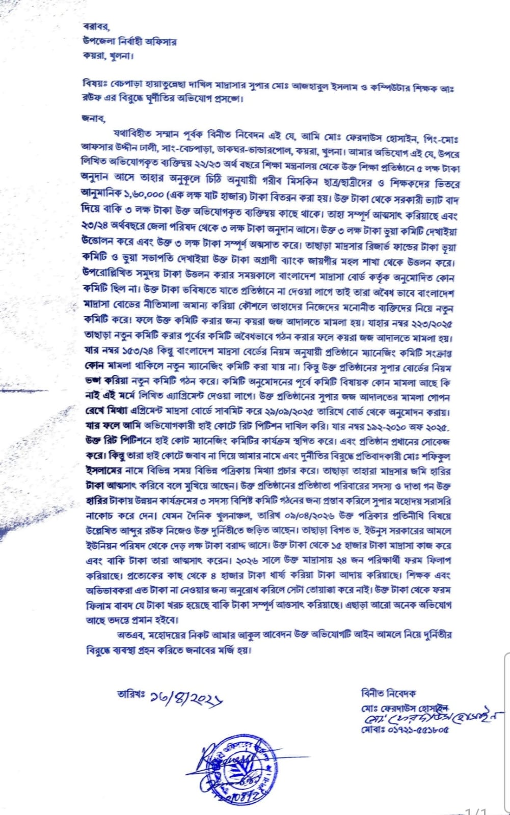 নিবন্ধন নাম্বারঃ ১১০, সিরিয়াল নাম্বারঃ ১৫৪, কোড নাম্বারঃ ৯২