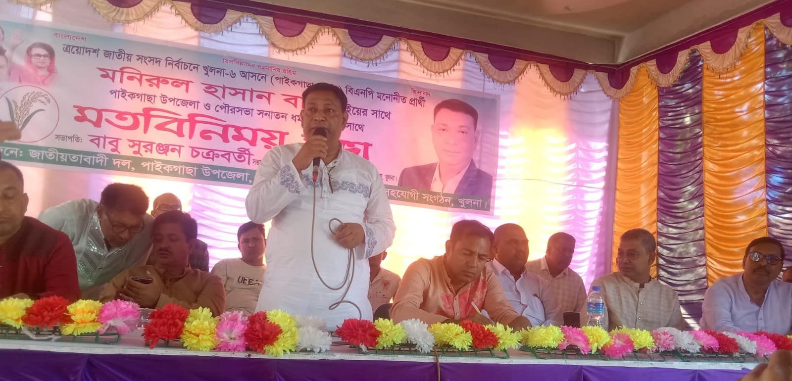 ত্রয়োদশ জাতীয় সংসদ নির্বাচনকে সামনে রেখে খুলনা-৬ (পাইকগাছা-কয়রা) আসনে বিএনপি মনোনীত প্রার্থী মনিরুল হাসান বাপ্পী সনাতন ধর্মাবলম্বীদের সঙ্গে মতবিনিময় করেছেন।