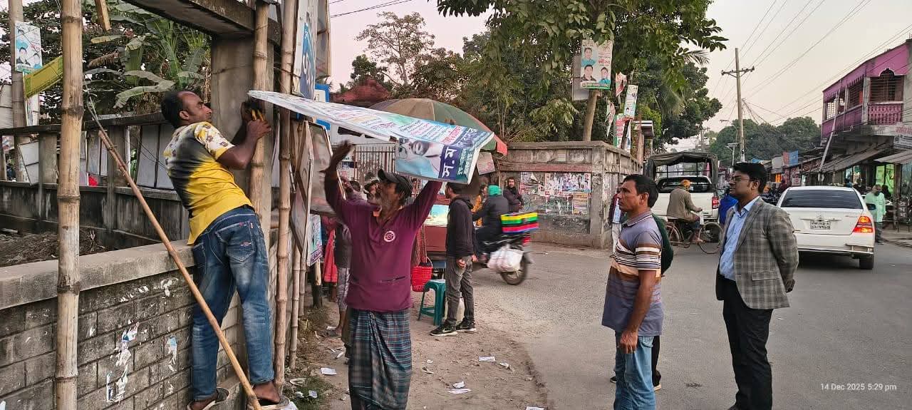 রবিবার (১৪ ডিসেম্বর) পৌর সদরের বিভিন্ন গুরুত্বপূর্ণ স্থানে এ অভিযান পরিচালিত হয়। এক্সিকিউটিভ ম্যাজিস্ট্রেট ও সহকারী কমিশনার (ভূমি) মোঃ ফজলে রাব্বীর নেতৃত্বে বিভিন্ন রাজনৈতিক দলের লাগানো ব্যানার ও ফেস্টুন অপসারণ করা হয়।