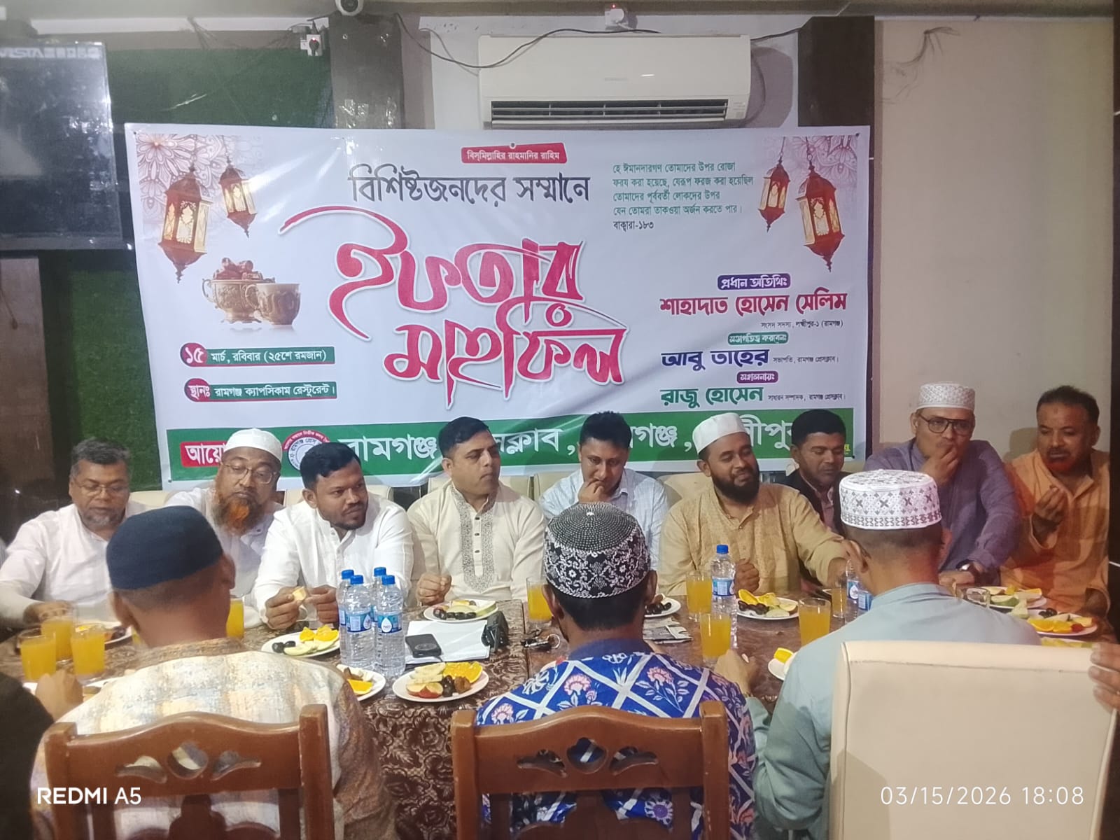 বিশিষ্টজনদের সম্মানে রামগঞ্জ প্রেসক্লাবের ইফতার মাহফিল অনুষ্ঠিত