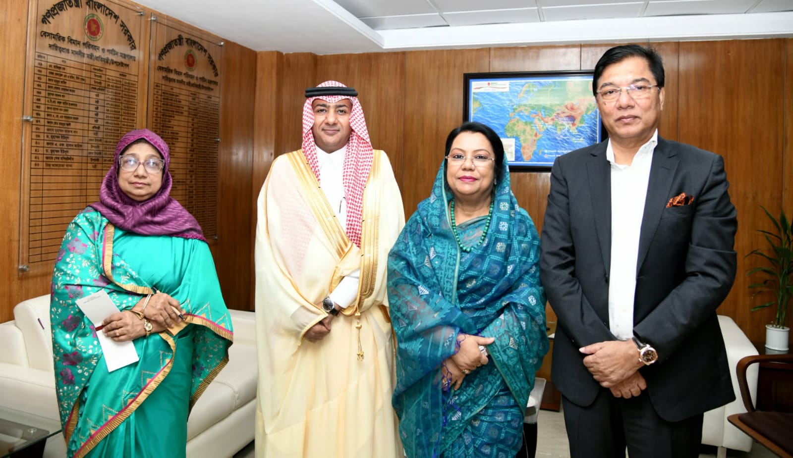 বেসামরিক বিমান পরিবহন ও পর্যটন মন্ত্রণালয়ের মাননীয় মন্ত্রী ও প্রতিমন্ত্রীর সঙ্গে বাংলাদেশে নিযুক্ত সৌদি আরবের রাষ্ট্রদূত H.E. Dr. Abdulllah Zafer H. Bin Abiyah এঁর সৌজন্য সাক্ষাৎ