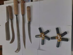 উদ্ধারকৃত অস্ত্রের মধ্যে রয়েছে—একটি চাপাতি, দুটি রামদা ও দুটি ছুরি। কার্তুজগুলো ‘CARTRIDGES AVGI 2.50 ml, 30 gm (7)’ লেখা সম্বলিত।