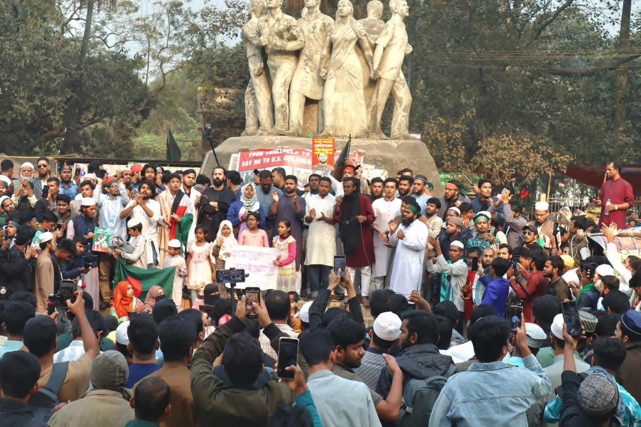 সমাবেশে বক্তারা বলেন, গত বছরের ১২ ডিসেম্বর রাজধানীতে শরীফ ওসমান হাদির ওপর হামলার ঘটনা ঘটে। পরে উন্নত চিকিৎসার জন্য সিঙ্গাপুরে নেওয়া হলে চিকিৎসাধীন অবস্থায় তার মৃত্যু হয়। এই ঘটনাকে কেন্দ্র করে শুরু থেকেই দেশের বিভিন্ন স্থানে প্রতিবাদ, মানববন্ধন ও বিক্ষোভ কর্মসূচি পালিত হয়ে আসছে বলে জানান তারা।