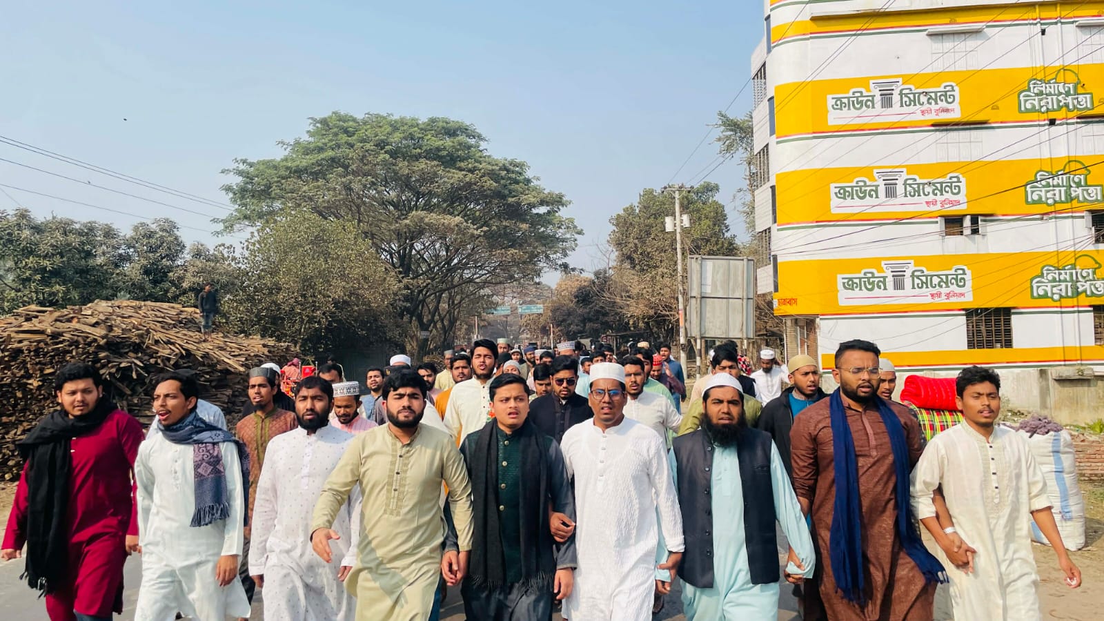 এ সময় শিক্ষার্থীরা ‘তুমি কে আমি কে, হাদি হাদি’, ‘দিন দুপুরে মানুষ মরে, প্রশাসন কী করে’, ‘ইনকিলাব ইনকিলাব, জিন্দাবাদ জিন্দাবাদ’ এবং ‘নারায়ে তাকবির, আল্লাহু আকবার’সহ বিভিন্ন স্লোগান দিতে দেখা যায়।