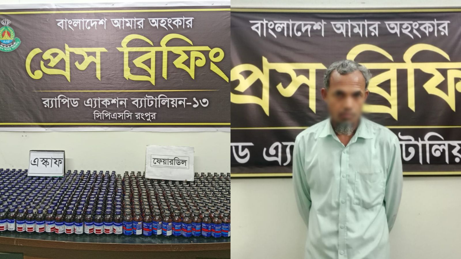 আদিতমারীতে র‍্যাবের হানা: শয়নকক্ষের খাটের নিচে মিলল ৬২৭ বোতল মাদক, কারবারি গ্রেপ্তার