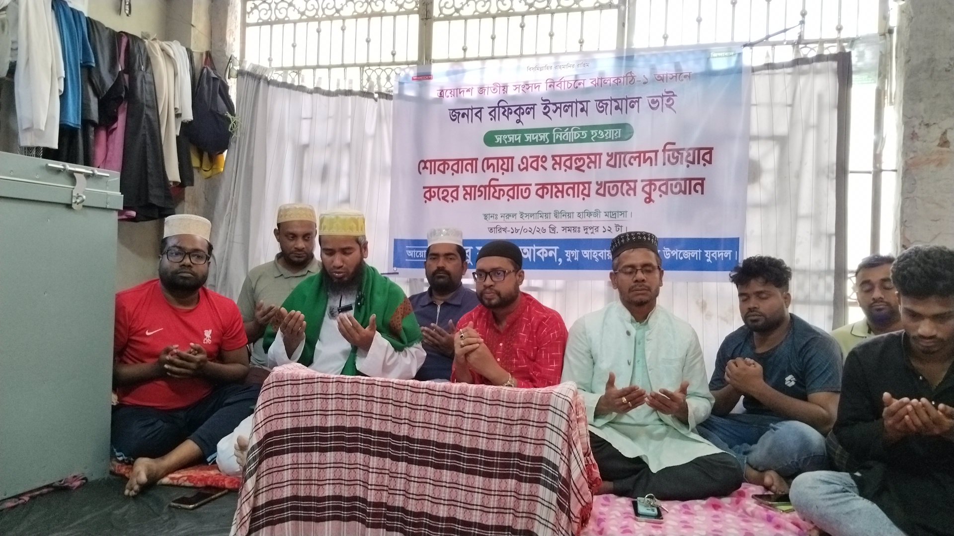 ঝালকাঠি–১ আসনে রফিকুল ইসলাম জামাল এমপি নির্বাচিত হওয়ায় শোকরানা দোয়া ও কুরআন খতম