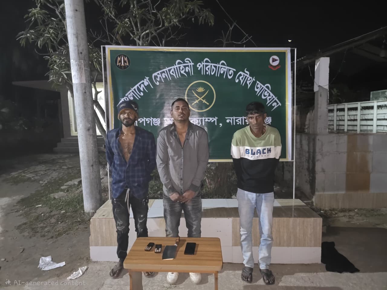 রূপগঞ্জে যৌথ অভিযানে ডাকাতি,অপহরণ ও মাদক মামলার তিন আসামী গ্রেফতার