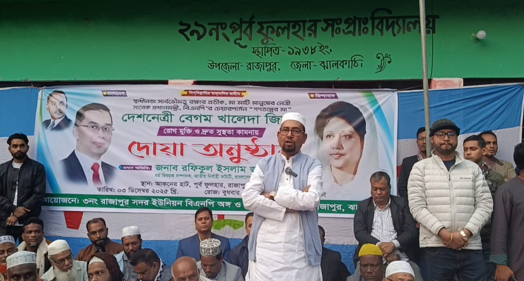 কাঁঠালিয়ায় খালেদা জিয়ার সুস্থতা কামনায় মিলাদ ও দোয়া মাহফিল অনুষ্ঠিত