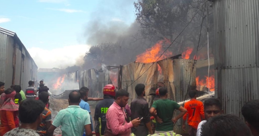 গাজীপুরে আগুনে ৬ টি ঝুটের গুদাম ও ১ বাড়ি পুড়ে ভশ্মীভূত