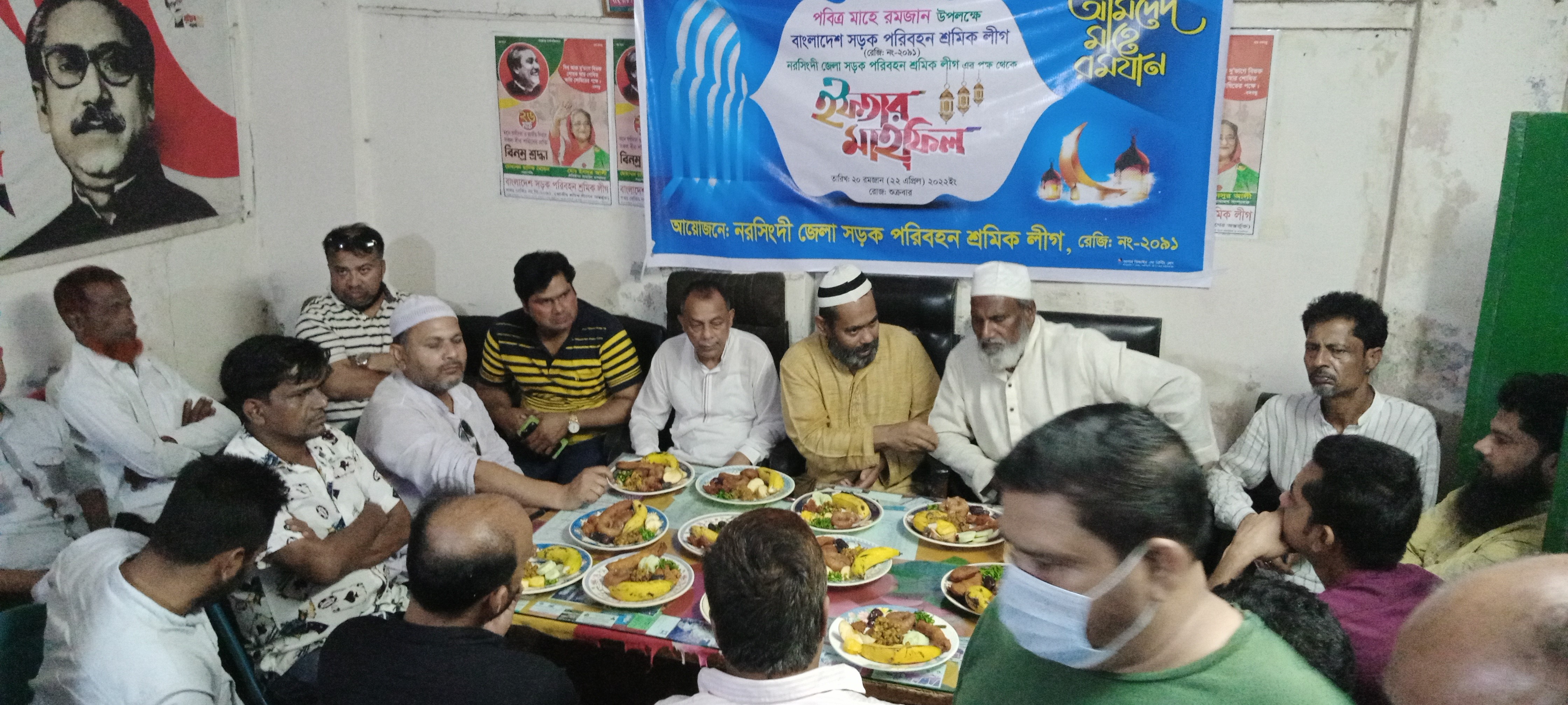 এস.এম.পরিবহনের ট্রান্সপোর্ট লাইন উদ্বোধন উপলক্ষে পরিবহন ও শ্রমিক লীগের পক্ষ থেকে ইফতার মাহফিল