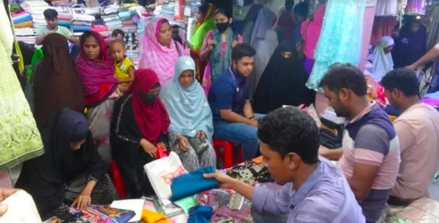 ঈদকে ঘিরে পাঁচবিবিতে জমে উঠেছে বেচাকেনা, ক্রেতাদের ভিড়ে সরগরম মার্কেটগুলো