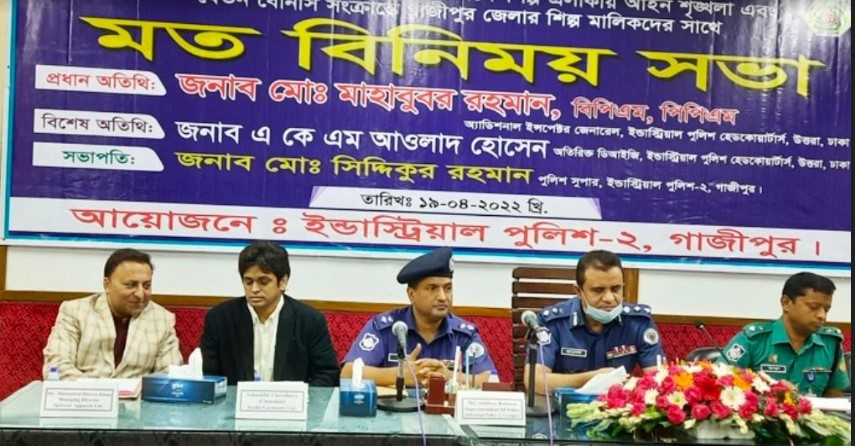 গাজীপুরে শিল্প মালিক ও ইন্ডাস্ট্রিয়াল পুলিশের মতবিনিময় সভা অনুষ্ঠিত