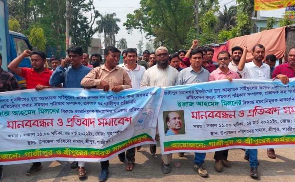 গাজীপুরে সমকালের বিরুদ্ধে মামলার প্রতিবাদে বিক্ষোভ মিছিল
