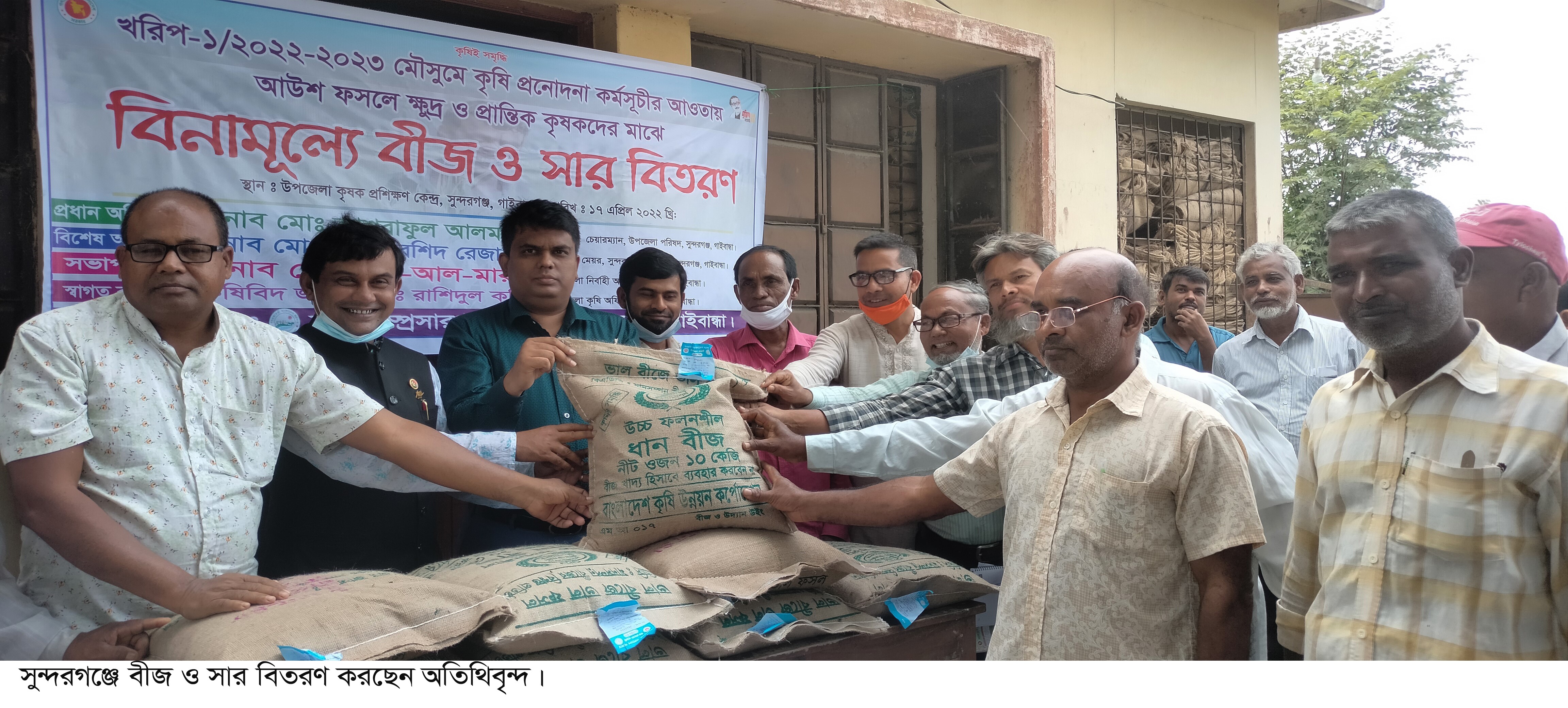 সুন্দরগঞ্জে আউশ ফসলের বীজ ও সার বিতরণ