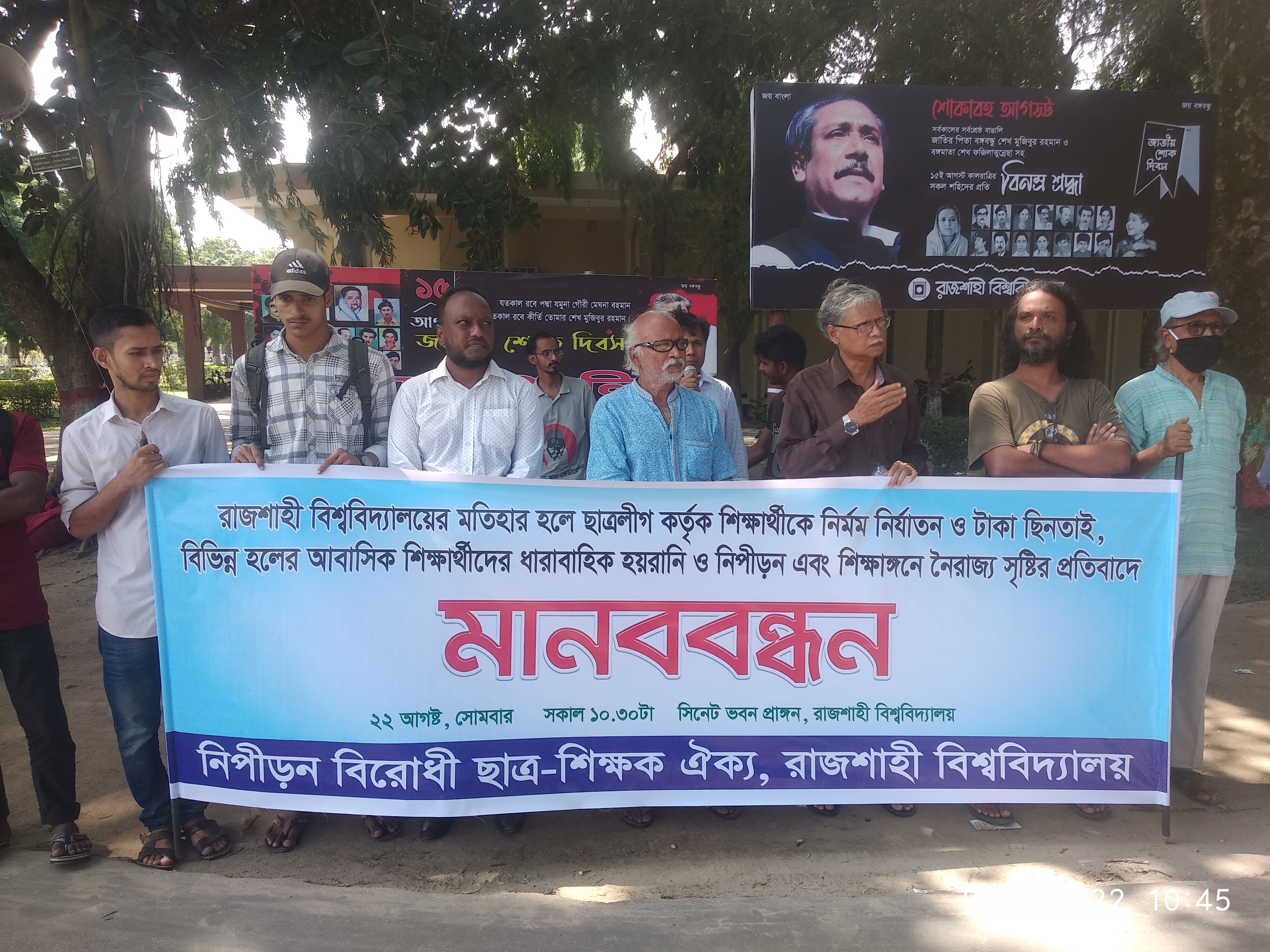 রাবি প্রতিনিধি।।   রাজশাহী বিশ্ববিদ্যালয়ে (রাবি) মতিহার হলে ছাত্রলীগের বিরুদ্ধে শিক্ষার্থীকে নির্যাতন ও ছিনতাইয়ের প্রতিবাদ জানিয়েছেন বিশ্ববিদ্যালয়ের শিক্ষক-শিক্ষার্থীরা। সোমবার (২২