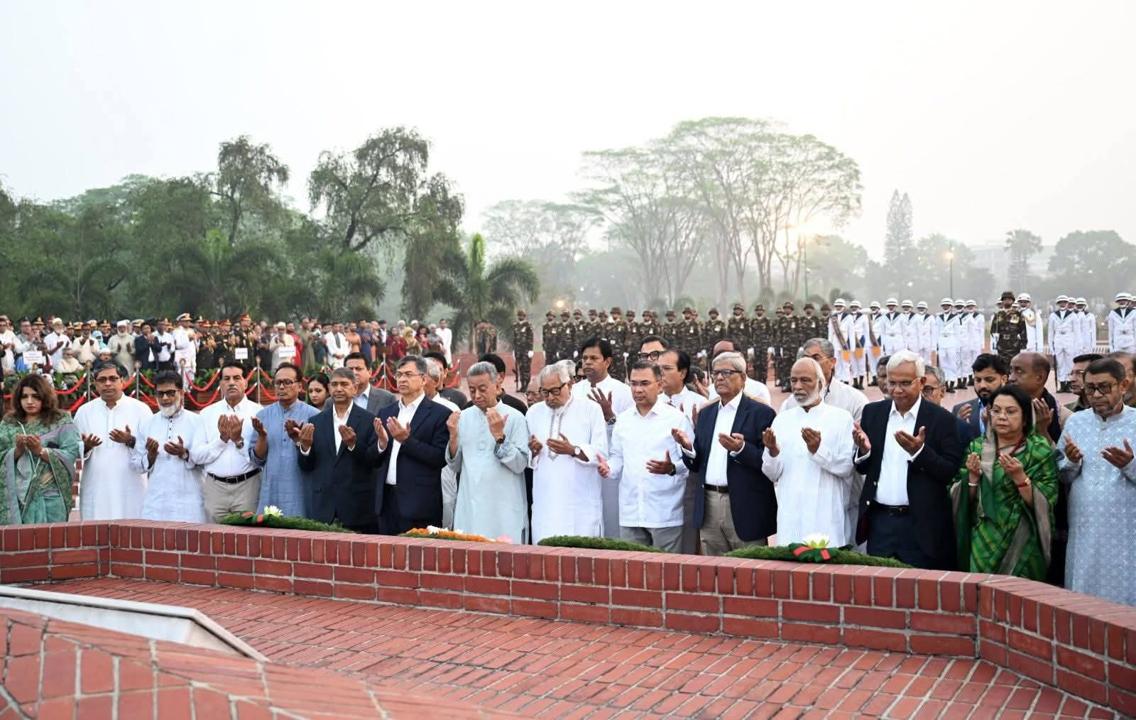 সাভারে জাতীয় স্মৃতিসৌধে পুষ্পস্তবক অর্পণ করে রাষ্ট্রপতি ও প্রধানমন্ত্রী জাতির শ্রেষ্ঠ সন্তানদের প্রতি শ্রদ্ধা জানান।
