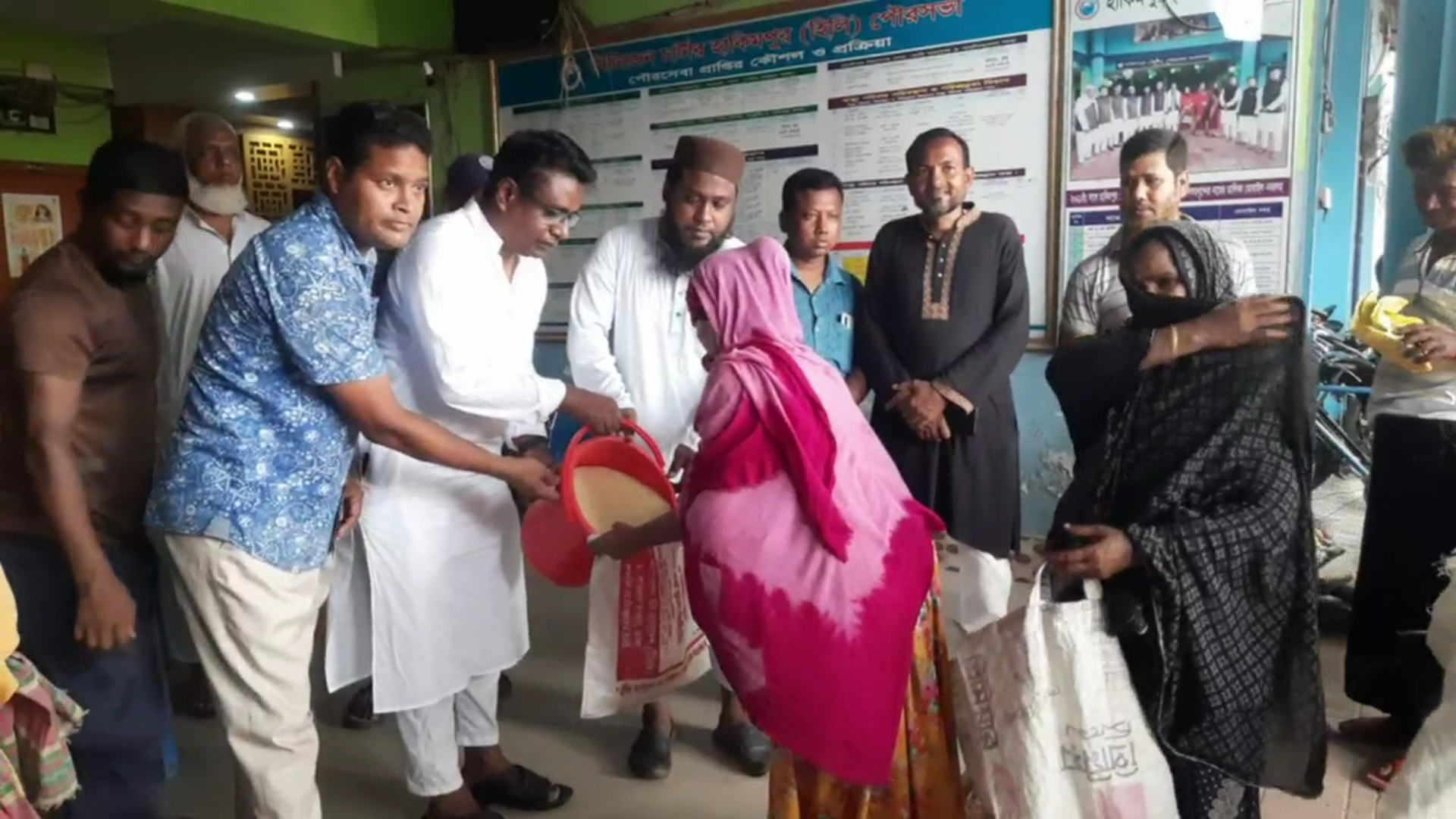 ঈদ উপলক্ষ্যে হিলিতে প্রধানমন্ত্রীর উপহার হিসাবে ভিজিএফের চাল বিতারণ।।