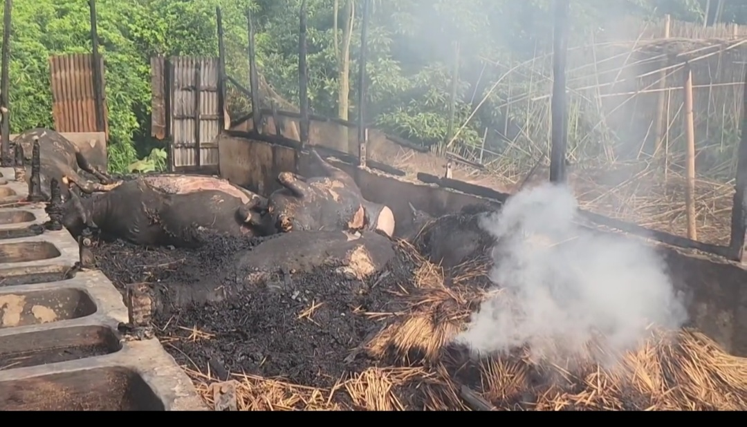 শিবচরে আগুনে ১৩ গরু মারা গেছে।।