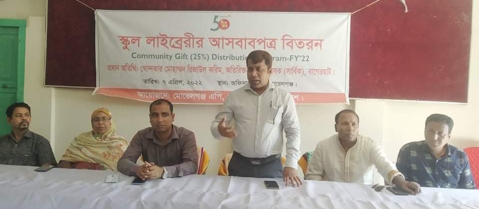 মোরেলগঞ্জে ওয়ার্ল্ড ভিশনের উদ্যোগে স্কুল লাইব্রেরিতে আসবাবপত্র বিতরণ