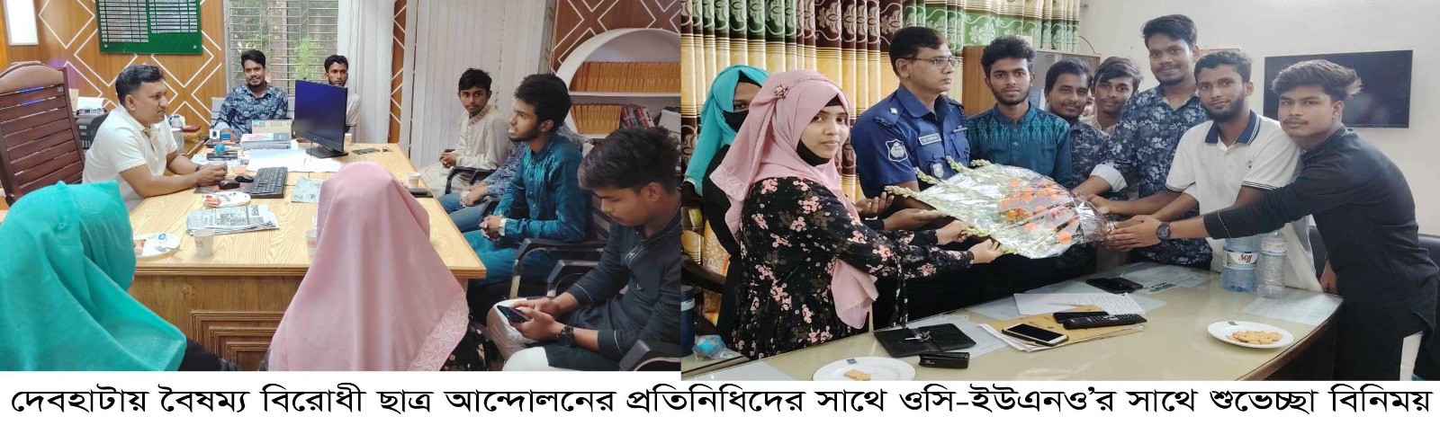 দেবহাটার ইউএনও-ওসি’র সাথে বৈষম্য বিরোধী আন্দোলনে অংশ নেওয়া শিক্ষার্থীদের মতবিনিময় বিনিময়।।