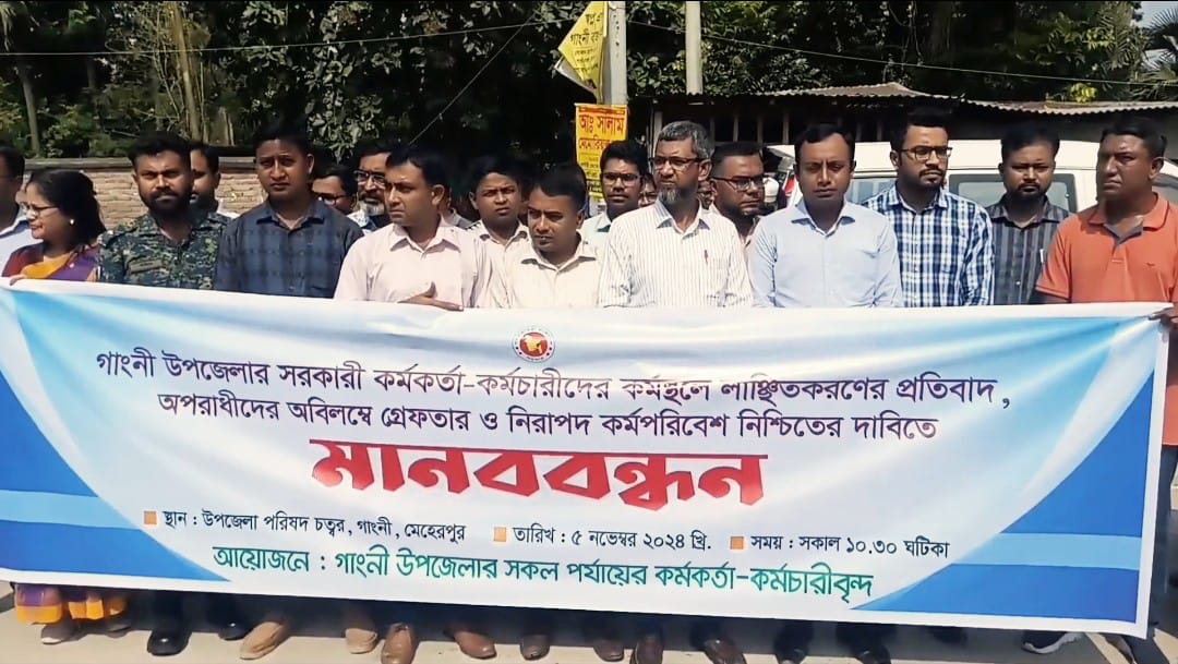 মেহেরপুরে শিক্ষা অফিসারকে লাঞ্ছিতের প্রতিবাদে মানববন্ধন।।