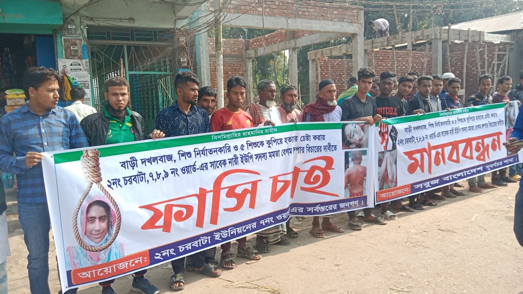 ৫ শিশুকে হত্যা চেষ্টাকারী নারীকে গ্রেফতারের দাবীতে মানববন্ধন