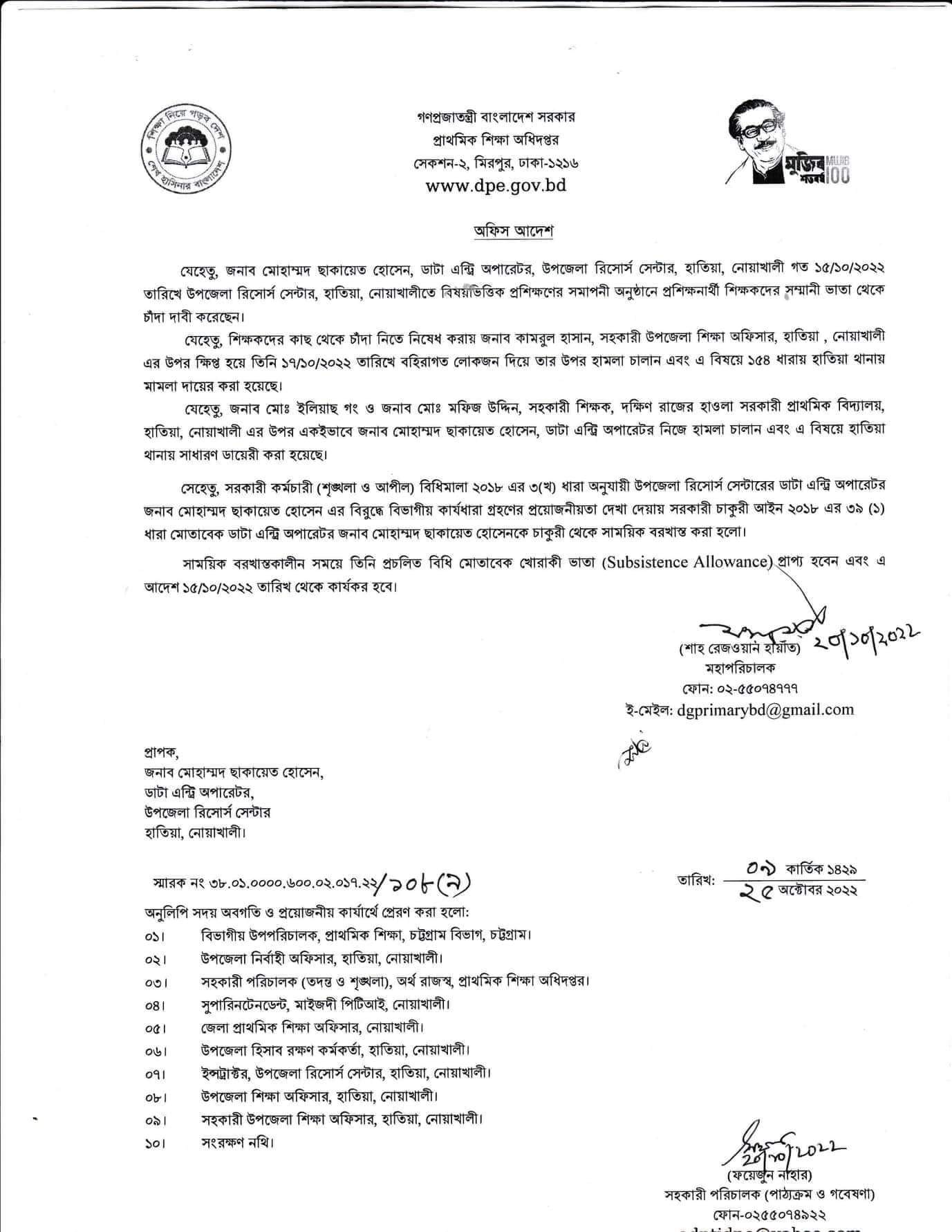 নোয়াখালীতে শিক্ষা কর্মকর্তাকে মারধর -ডাটা এন্টি অপারেটর বরখাস্ত