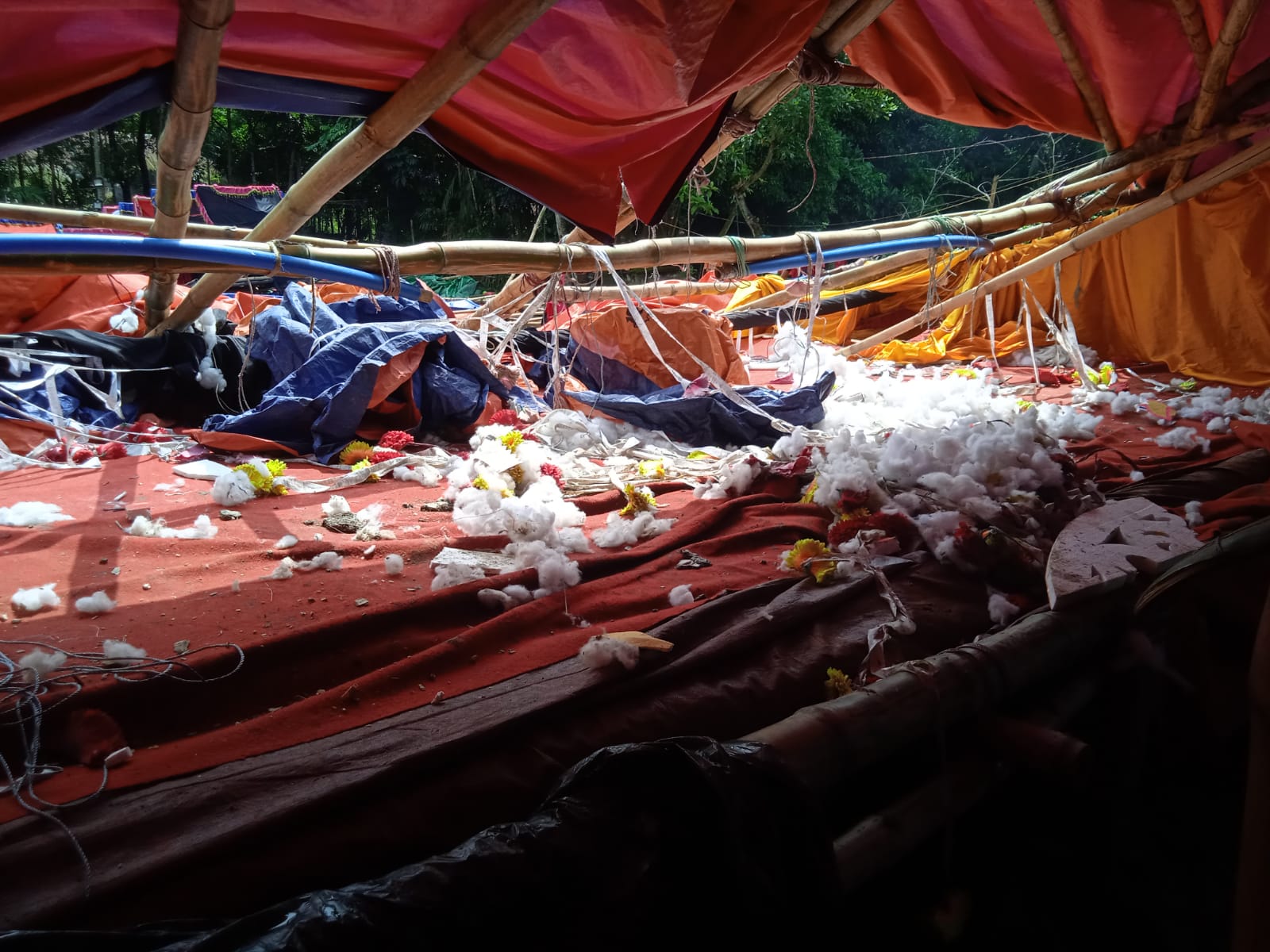 কবিরহাটে ঝড়ে লন্ডভন্ড দুর্গাপূজার মণ্ডপ