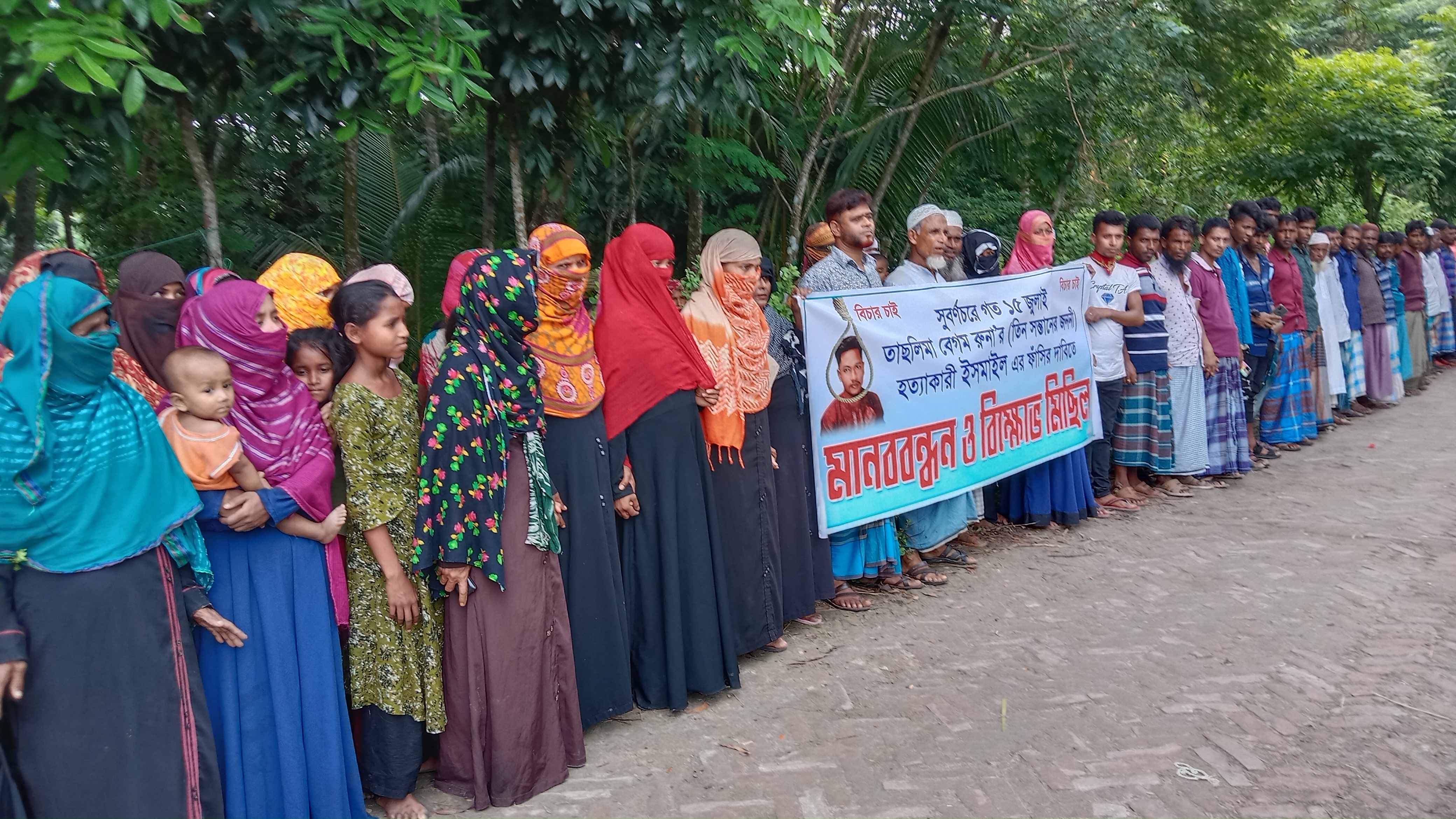 সুবর্ণচরে গৃহবধূ হত্যার বিচারের দাবিতে মানববন্ধন