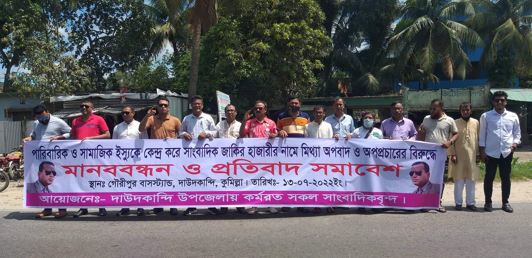 দাউদকান্দিতে সাংবাদিক জাকির হাজারীর নামে অপপ্রচারের প্রতিবাদে মানববন্দন ও স্বারকলিপি পেশ